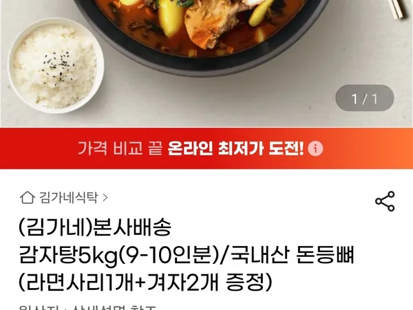 감자탕5kg 국내산 돈등뼈(라면사리1개+겨자2개 증정) / 1...