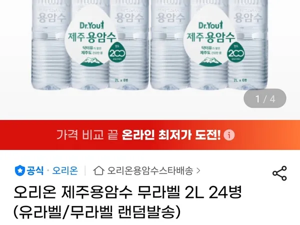 오리온 제주용암수 무라벨 2L 24병 / 13800원