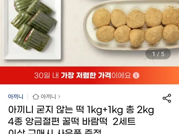 아끼니 굳지 않는 떡 1kg+1kg 총 2kg 4종 / 114...